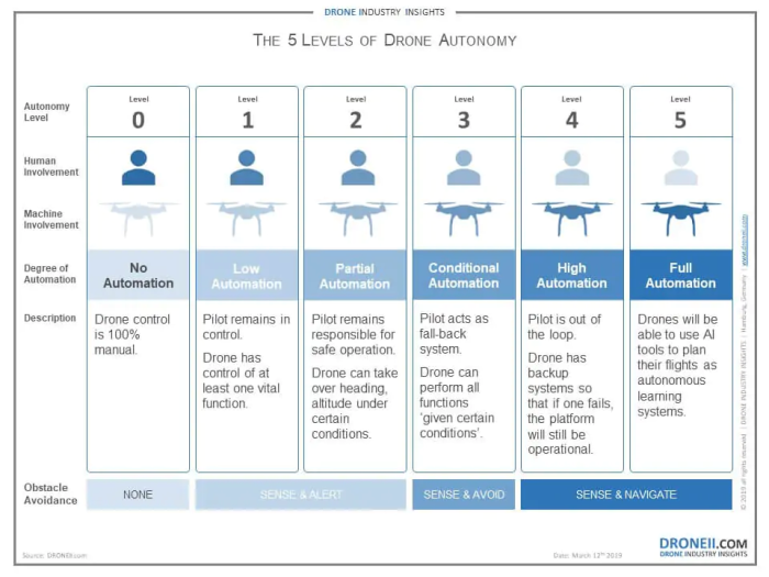Figure 4: Levels of Drone Autonomy [4]