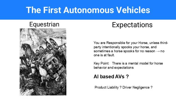 Finally, autonomy will have implications on topics such as civil infrastructure guidance, field maintenance, interaction with emergency services, interaction with disabled and young riders, insurance markets, and most importantly the legal profession. There are many research issues underlying all of these topics.