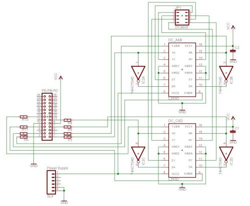 Eine H-Brücke oder zwei Halbbrückentreiber können eingesetzt werden um einen Gleichstrommotor vorwärts und rückwärts laufen zu lassen. Als Schaltung können fertige Anwendungsspezifische Integrierte Schaltungen (engl. application specific integrated circuit, ASIC) genutzt werden, oder eine aus einzelnen Komponenten, wie z.B. Transistoren, selbst zusammengebaut werden. In diesem Lab kommt der IC L293D zum Einsatz, welcher 4 Halbbrückentreiber, geeignet zur Ansteuerung von 2 DC-Motoren, bietet.