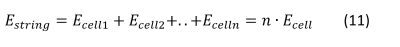 Each battery module or a small battery pack consists individual cells. All cells are of the same model and are preferably parameter-matched to provide maximum performance utilization. There are two types of connections which can be used to combine individual cells: series connection and parallel connection. In a series connection cells are connected in a string so that positive pole of one cell is connected to the negative pole of the next cell. The correct polarity is critical. Series connection is used to increase voltage of the pack. A single cell has nominal voltage of 1.2V to 3.8V. Higher voltages can be obtained by series connecting cells. Voltage of a string is the sum of individual cells. n is the number of series connected cells.