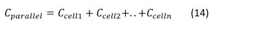 As the capacity rating is increased, the C-rate is increased proportionally as well, resulting in higher permissible charge/discharge current levels. Similarly, as in series connection, the total energy of a parallel connection is equal to the sum of individual cells.