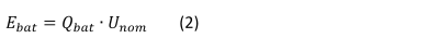 While specific energy describes the relative weight of the battery, volumetric energy density is used to describe the relative volume or size of the battery. A battery with higher volumetric energy density will be smaller at the same rated energy. The volumetric energy density DEv can be calculated using (x) where Ebat is the nominal energy and Vol. is the volume measured in liters l. The result is expressed in Wh/l units. A battery datasheet most likely will provide the mass however the volume will have to be calculated using provided dimensions. High-performance LIBs can have volumetric energy density of 400Wh/l or even more.