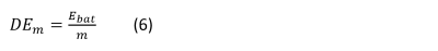 When selecting a battery for a particular application certain comparison of available models has to be done to make an optimal choice from price and performance perspective. For portable applications gravimetric energy density (also specific energy, gravimetric density) and volumetric energy density (occasionally energy density) are common indicators of battery performance. The gravimetric energy density DEm can be calculated using (x) where Ebat is the nominal energy and mbat is the mass of the battery. It is traditionally expressed in Wh/kg units. It shows how much energy can be stored in one kilogram of battery mass. For example, a 300Wh battery weighting 2kg has 150Wh/kg gravimetric energy density. A high-performance LIB has approximately 200Wh/kg specific energy density.