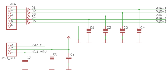 NB! Applied voltage and current are primary dependent of motors which are used and can not exceed the limits of specific motor. These limits should be checked from motor datasheet. Motors provided with the kit are most commonly supplied with the voltage 5-6 V and therefore the power distribution cable is using voltage regulators, limiting the output to 5 or 6 V.