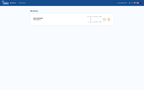 3. Select the device from the list. Note that you may have access to multiple laboratories, devices, and technologies. Each device represents specific features, so check carefully with the documentation and scenarios you will implement to determine the necessary hardware components for your lab work. In case of doubt, contact the supervisor. A sample list with ESP32 laboratory devices is present in the figure 3.
