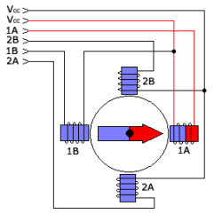 The windings of a bipolar stepper-motor.