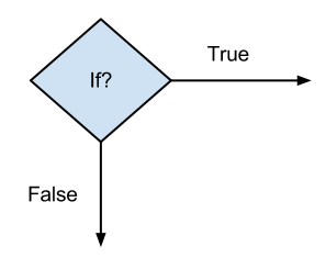 Diamond (rhombus). Inside diamond is a logical expression and in most cases two arrows are drawn out from diamond. One is when logical expression results True (Yes/1) and other when expression result is False (No/0). Always both arrows have to be labeled. In special case only one arrow can be used as output from diamond. The case is when logical expression can clearly result only one solution, e.g. True. This is the case where for example endless cycle is used in program code (e.g. while (true)).