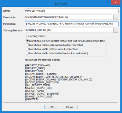 Executable: C:\HomeBlocks\Programmer\AvrDude\avrdude.exe